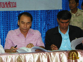 พิธีลงนามบันทึกข้อตกลงความร่วมมือ (MOU) การแก้ไขปัญหายาเสพติด อำเภอสนม จังหวัดสุรินทร์ ระหว่าง นายอำเภอสนม (ผู้อำนวยการศูนย์ปฏิบัติการพลังแผ่นดินเอาชนะยาเสพติดอำเภอสนม) กับ หัวหน้าส่วนราชการ ผู้บริหารสถานศึกษา กำนัน ผู้ใหญ่บ้าน นายกองค์กรปกครองส่วนท้องถิ่น วันที่ 22 กุมภาพันธ์ พ.ศ. 2555 ณ อาคารเอนกประสงค์เทศบาลตำบลสนม อ.สนม จ.สุรินทร์